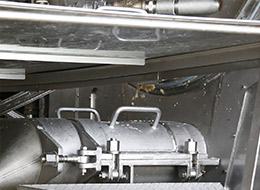 生地をオーブンに入れ、200〜300度の熱風で一気に焼く。水分量が不安定だと、ふくらまなかったり破裂してしまう。乾燥機でベストな水分量にし、絶妙な温度で焼き上げる。