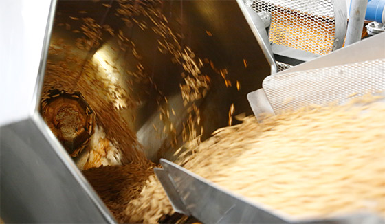 カリッとおいしい亀田の柿の種は一体どのように作られているのか? 普段は見ることのできない、製造工程を紹介。