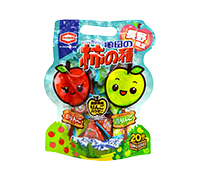 かわいいテトラ個包装!やさしい甘さのりんご風味の柿の種&甘~い香りのもも風味の柿の種です。