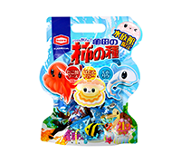 新江ノ島水族館オリジナル。しおサケ風味、イカ焼きマヨ風味、ゆずカツオ風味の3種類のおいしさをアソートした亀田の柿の種。