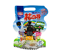 ほどよい甘さのキャラメル風味をプラスしたお手軽サイズのスイートな柿の種です。