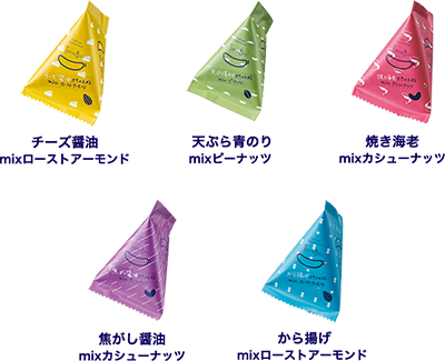 | ※アソートボックスは、上記5種類を詰め合わせた商品です。クラックピーナッツ白トリュフ塩仕立ては入っておりません。 | |||||