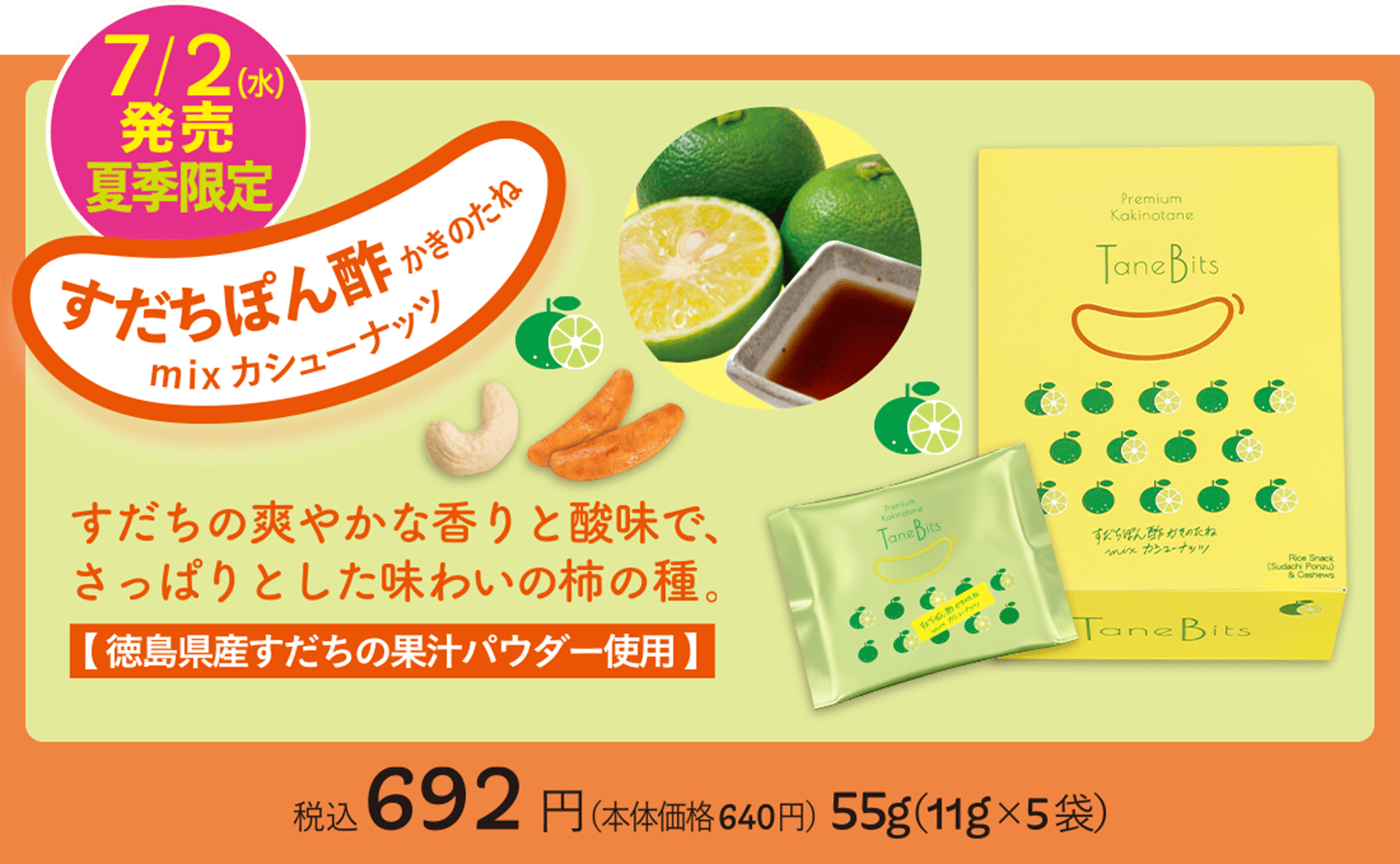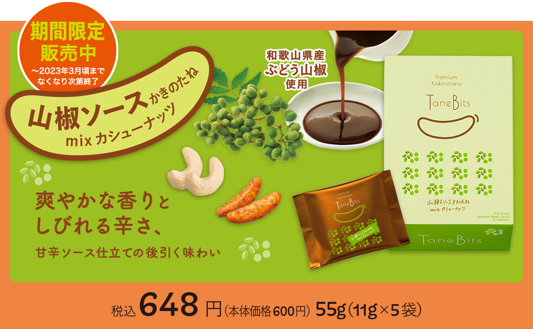 すじ青のりで仕上げた、濃厚な味わいの柿の種。