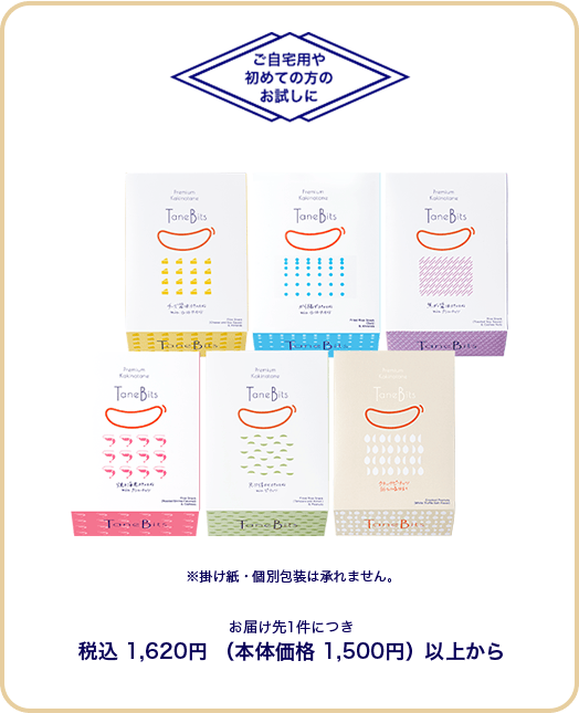 | ※アソートボックスは、上記5種類を詰め合わせた商品です。クラックピーナッツ白トリュフ塩仕立ては入っておりません。 | ||||